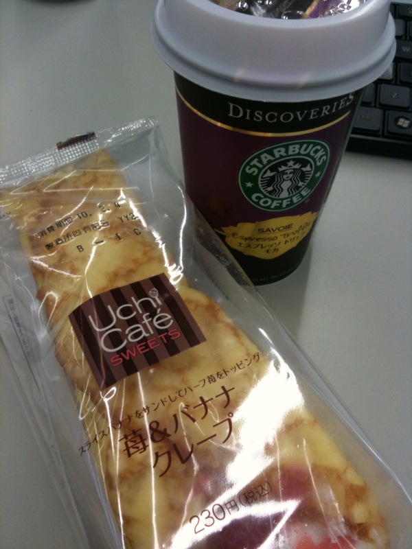 02/02 今日の朝スイーツ Category:No Category Date:2010年02月02日 今日も近くのローソン。というか最近ホントローソン以外に行ってないなー。。。 「苺&バナナクレープ」\230- パッケージをよーくみると、 「スライスバナナをサンドしてハーフ苺をトッピング」 ・・・けちってるようにしか聞こえないのは俺が曲がってる???PR