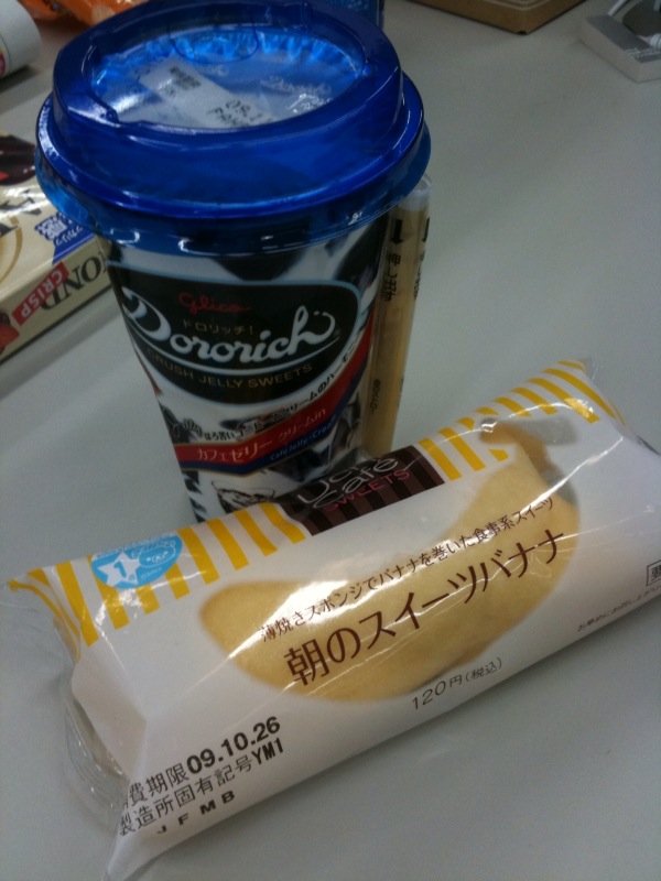今日の朝スイーツ Category:Sweets Date:2009年10月26日 今日もまた会社近くのローソン。 (俺の中で)定番のドロリッチと 朝のスイーツバナナ。 食事系スイーツって書かれてるのがまた気になっていて、今日やっと買う勇気が出た(ぇPR