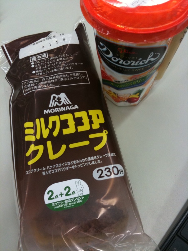 01/19 今日の朝スイーツ Category:Sweets Date:2010年01月19日 今日は近くのローソンにて。 「ミルクココア クレープ」\230- じつは食べるの2度目なんですがw ミルクココア クリーム大福の前にw(ブログアップを素で忘れていたのですが。。。) そしたら、クリーム大福でメンバーのくろまうすさんが触発されてしまったようでw したらばブログに上げるしか無いと思いまた食べてるわけです。 そういや、ミッフィーのポイントは累計70ポイントになりまして、 おなじくメンバーのnoichiさんやnatsukiさんに寄贈されましたwPR