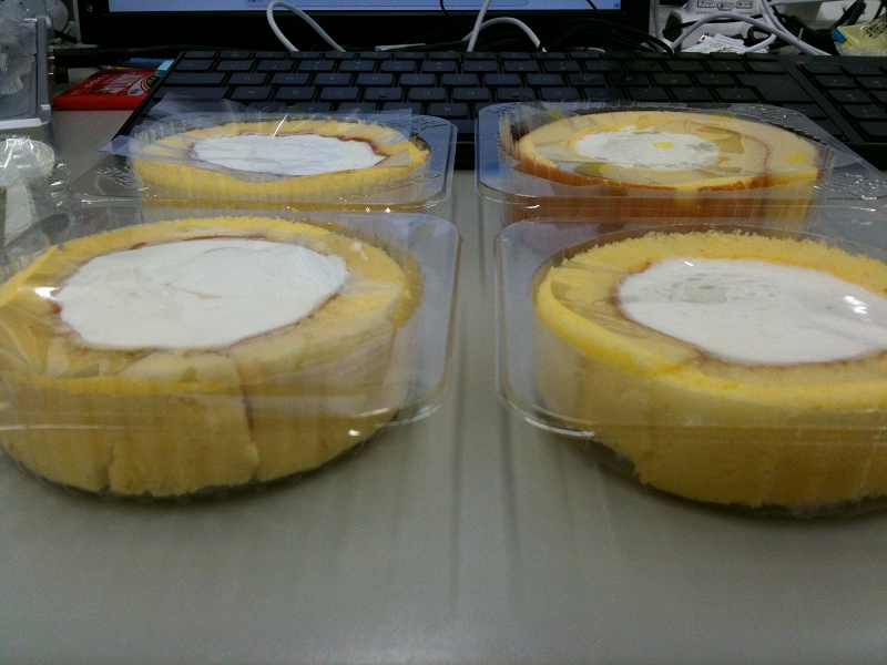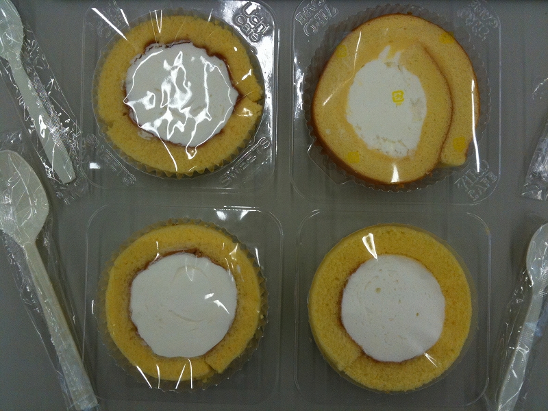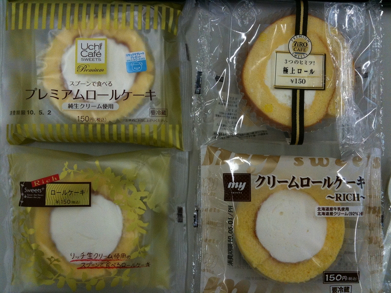 04/30 今日の朝スイーツ GW特別編! Category:Sweets Date:2010年04月30日 今日は通勤電車内に人が少なかったですね~。地元は。 相変わらず山手線は混んでました。。。 こんにちは、翡陽です。 巷はゴールデンウィークですね。みなさんはいかがお過ごしですか? 私はいつも通り、会社でPCの前に座ってます。 Macにしたいなー。。。会社のPCなんて思いながらw さてさて、今日はですね、巷はGWだけど私は仕事だ!ということで、 朝スイーツ特別編をお送りしちゃいます。 ということで、今回登場のスイーツはこちら! 左上から、ローソン・セブンイレブン・ファミリーマート・am/pmの ロールケーキです! ファミリーマートが出してたのは知ってたんですが、am/pmまで出してたとは。。。 ということで、食べちゃいましょうか! といっても、ただ食べるだけじゃ芸がないので、特別編ということもあり、自分の好みにあうかどうかをレビューしていきます。 ということで、一挙開封! クリームの量はぱっと見セブンイレブン以外は同じくらいでしょうか。 ちなみに、厚さはこんな感じ。 ちょっとわかりにくいかなー。。。 まぁ、ほぼ同じくらいです、ハイ。 では、お待ちかねのレビューに行きましょう! 1・am/pm クリームロールケーキ 生クリームというよりも、ミルククリームな感じで、とりあえずミルクが濃いです。 …しつこいほどに^^; クリームも粗く、「~RICH~」と書いてあったけど、こういうもんなのかな?という印象が拭えないです。。。 スポンジも、まぁ、普通な感じで。 2・ファミリーマート Richロールケーキ am/pm とは打って変わって、きめ細かいクリームです。 口溶けもなかなかいい。 …んですが、ちょっと薄い。。。なんというか、コクが欲しいです、クリームに。 スポンジは、おいしい。といっても、感動するほどではないですが^^; 3・ローソン プレミアムロールケーキ クリームのきめ細かさは、ファミマとa/pの中間か、ファミマ寄り。 味も、ファミマとa/pの中間か、ファミマ寄り。 自分的には、このくらいがちょうどいい。 スポンジとの食べ合わせの味も、自分としてはなかなかくるものがあります。 4・セブンイレブン 3つのヒミツ!極上ロール さて、これだけちょっと異色ですね。 ロールケーキらしいロールケーキ。 形は満点です。もちろん、自分的に。 ちょっと写真じゃ見えにくいかもしれませんが、生クリームとスポンジの間にカスタードクリームが塗ってあるというこだわり。 で、肝心のお味ですが、 カスタードに生クリームが。。。なんか微妙に合わない。。。 たぶん、生クリーム自体も味がしっかりしてるので、好き嫌いが分かれる組み合わせになっているんじゃないかなという感想。 スポンジはこの4つの中では一番オイシイと思う。自分の好みで。 ただ、全体的に見たときはちょっとクリームで残念かなぁ。。。 と、いうことで、4つを食べ比べしてみたわけなんですが、 自分的な1番は。。。 ローソンのプレミアロールケーキですね。 総合評価です。クリームだけ、とか、スポンジだけ、とかだといろいろ琴線に触れる物もあったんですが>< ということで、自分勝手レビューをお伝えしました。 ぇ?ロールケーキ、どうしたかって??? もちろん、翡陽が美味しく頂きました。PR
