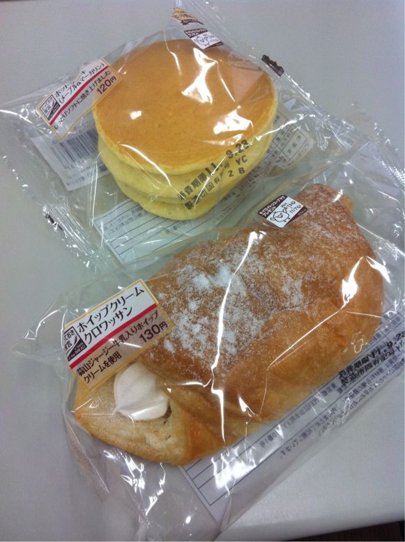 11-09-21 今日の朝スイーツ Category:Sweets Date:2011年09月21日 今日は、LAWSONのパンコーナー "とっておき宣言" からホイップクリームクロワッサン¥130-ホットケーキ (メープル&マーガリン)¥120-まぁ、鉄板です。PR